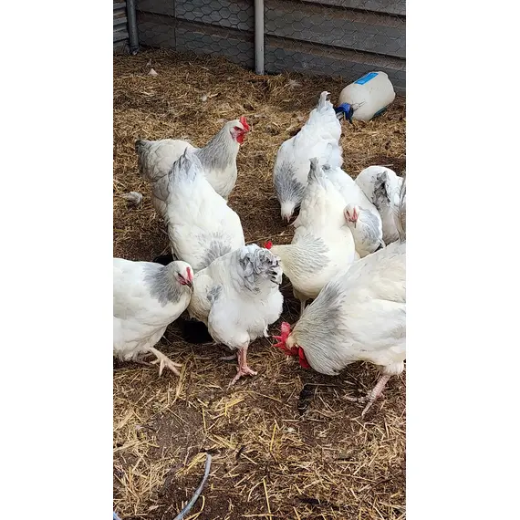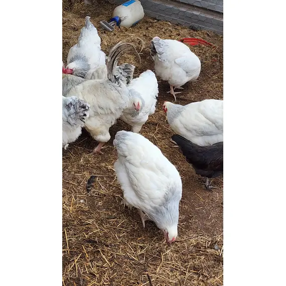 Healthy, purebred Coronation Sussex Eggs available now! These rare, gentle birds are known for their beautiful lavender and white plumage, calm temperament, and excellent egg-laying.