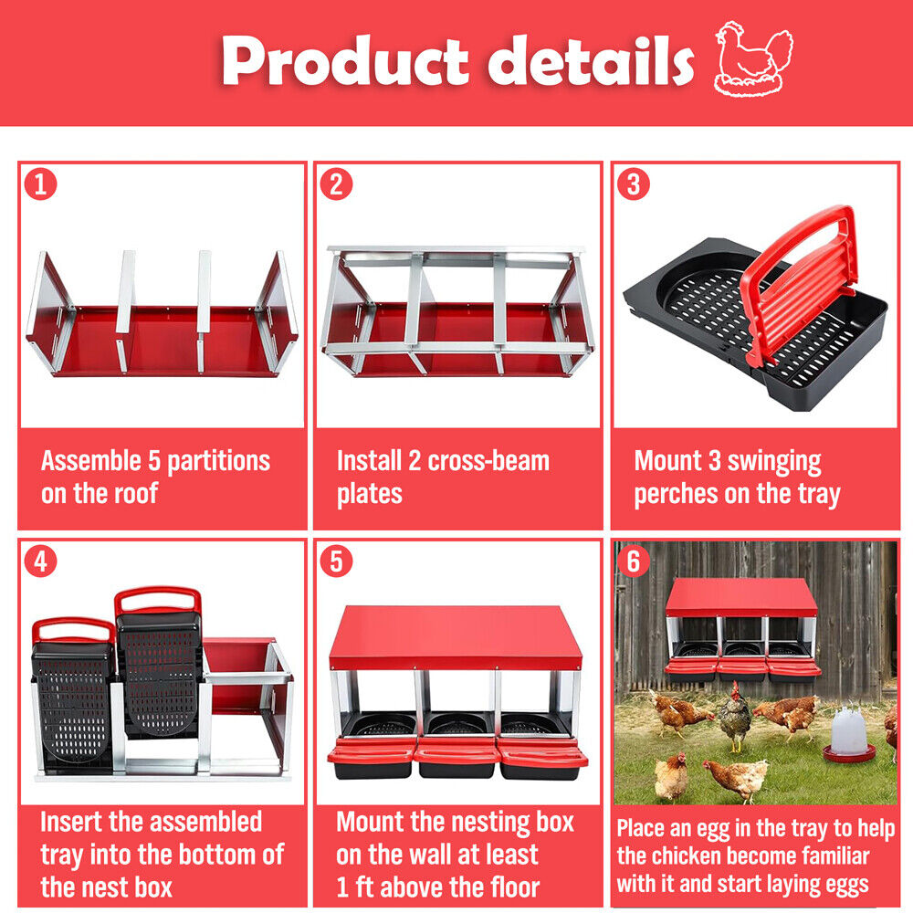 VaKa Chicken Hen Coop Hutch 3 Hole Inside Outside Roll Away Lay Egg Nesting Box