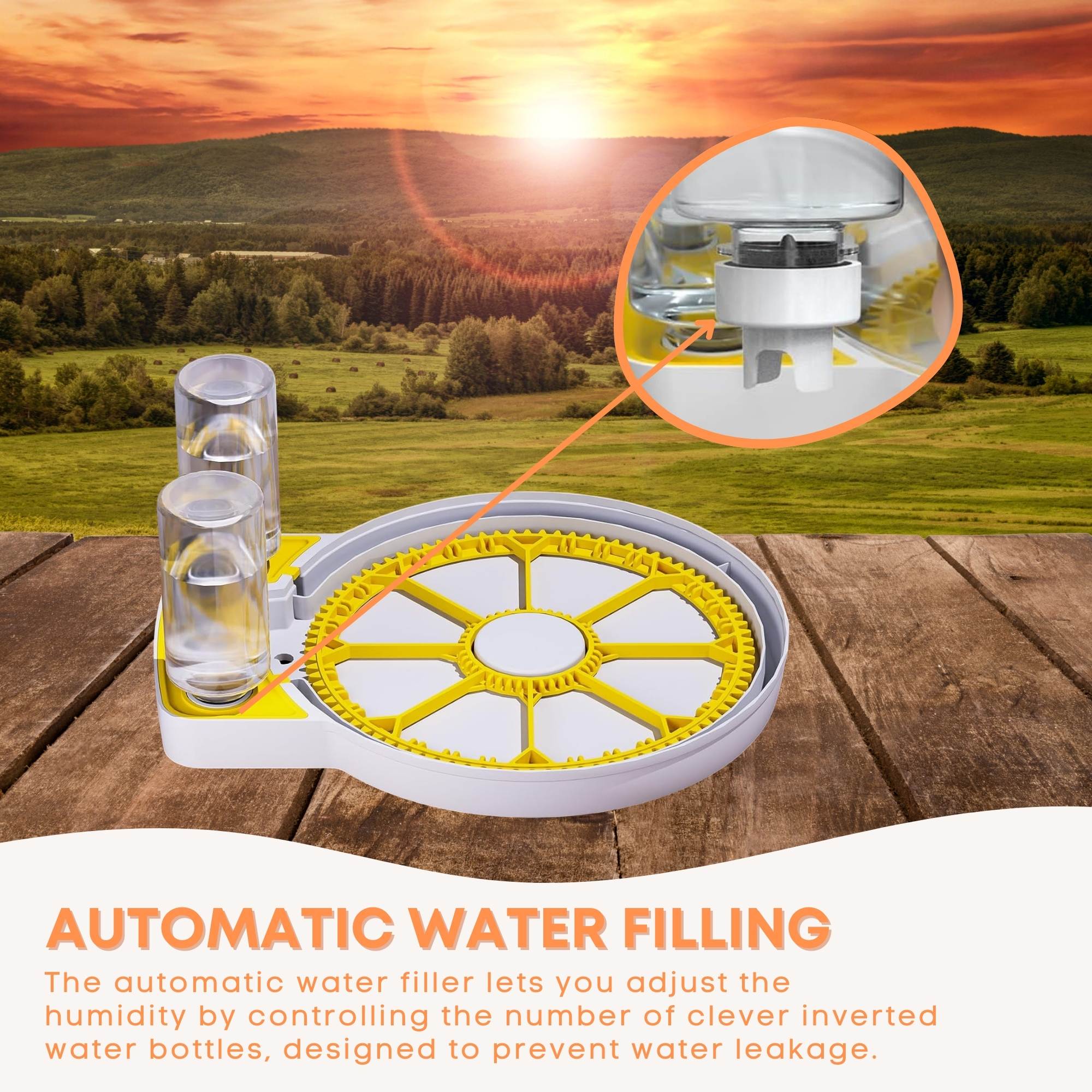 - Automatic Water Filling: The automatic water filler lets you adjust the humidity by controlling the number of clever inverted water bottles, designed to prevent water leakage.